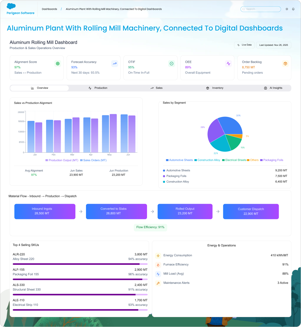 Aligning sales agreements with production is no longer optional for aluminum manufacturers—it’s essential for efficiency, cost control, and customer satisfaction. Salesforce Manufacturing Cloud creates a unified operational ecosystem where sales commitments, forecasts, and production capacity work in harmony.