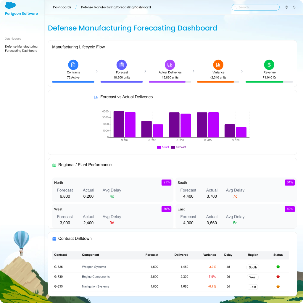 Defense manufacturing requires precision forecasting to avoid billion-dollar risks.? Salesforce Manufacturing Cloud delivers: