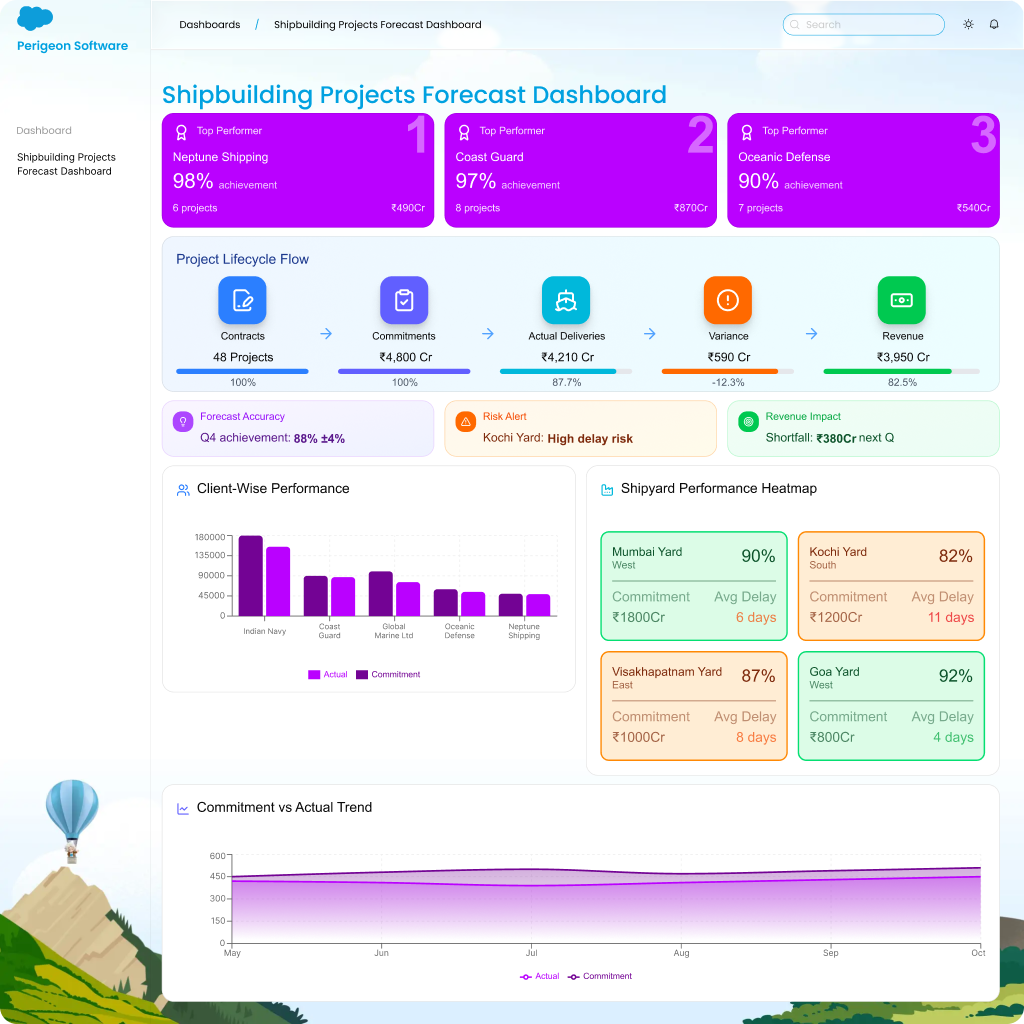 Salesforce Manufacturing Cloud improves forecast reliability by combining account-based forecasting, AI insights, and supplier collaboration, ensuring that shipbuilders can plan production and revenue with confidence.