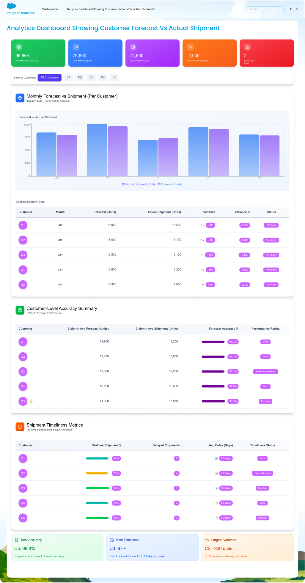 These dashboards give customers complete visibility into how well the manufacturer meets commitments.
