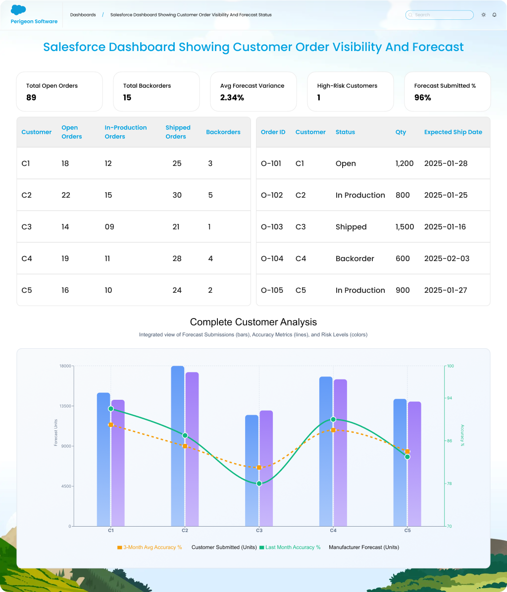 Customers gain real-time insight into order status, forecasts, and contractual commitments — without waiting for manual updates.