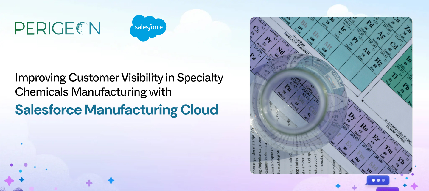 As a Salesforce Manufacturing Cloud consulting partner, Perigeon Software helps specialty chemical manufacturers create customer-centric visibility frameworks that integrate data across CRM, ERP, and production systems.