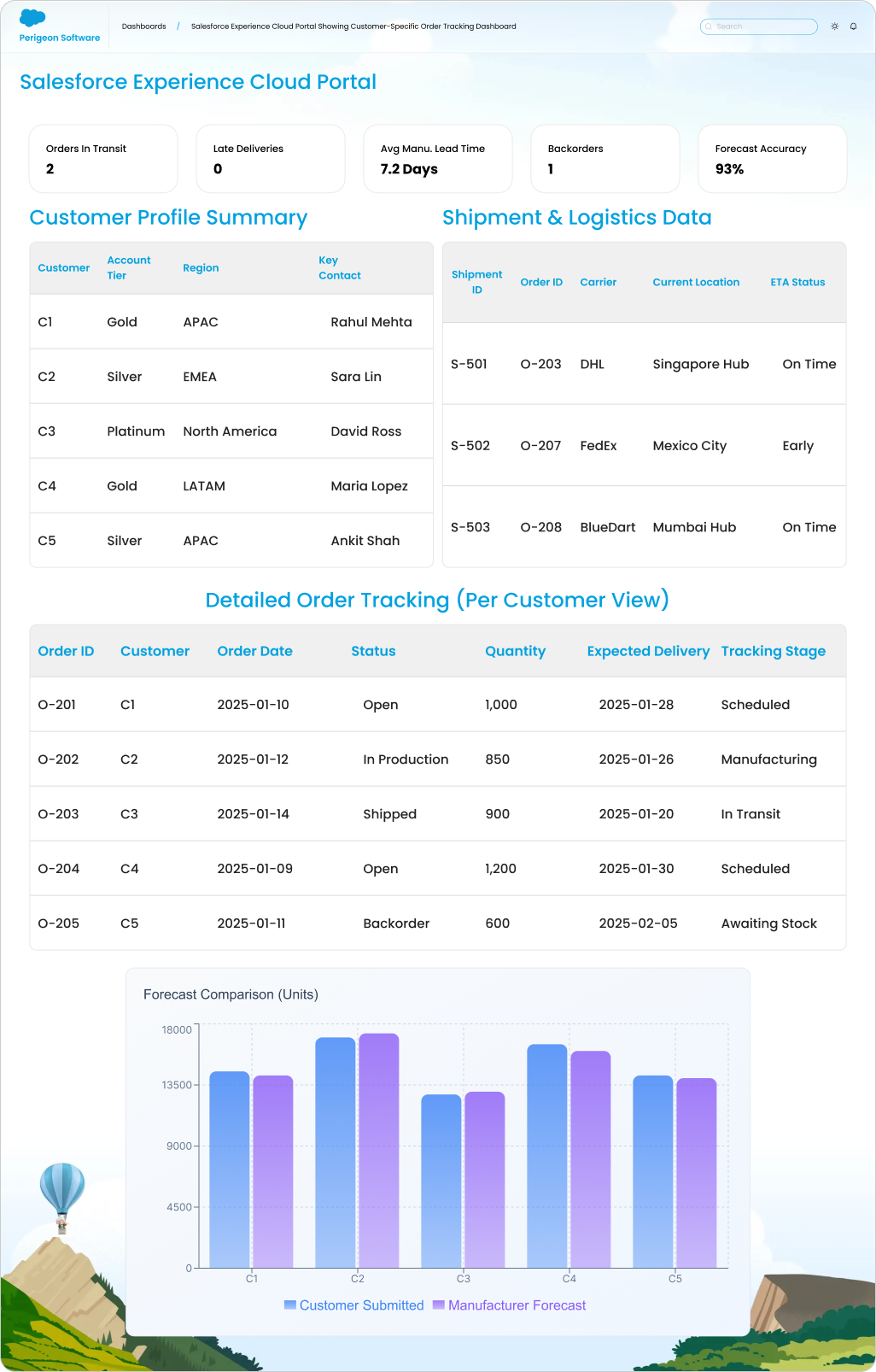 These dashboards give customers complete visibility into how well the manufacturer meets commitments.