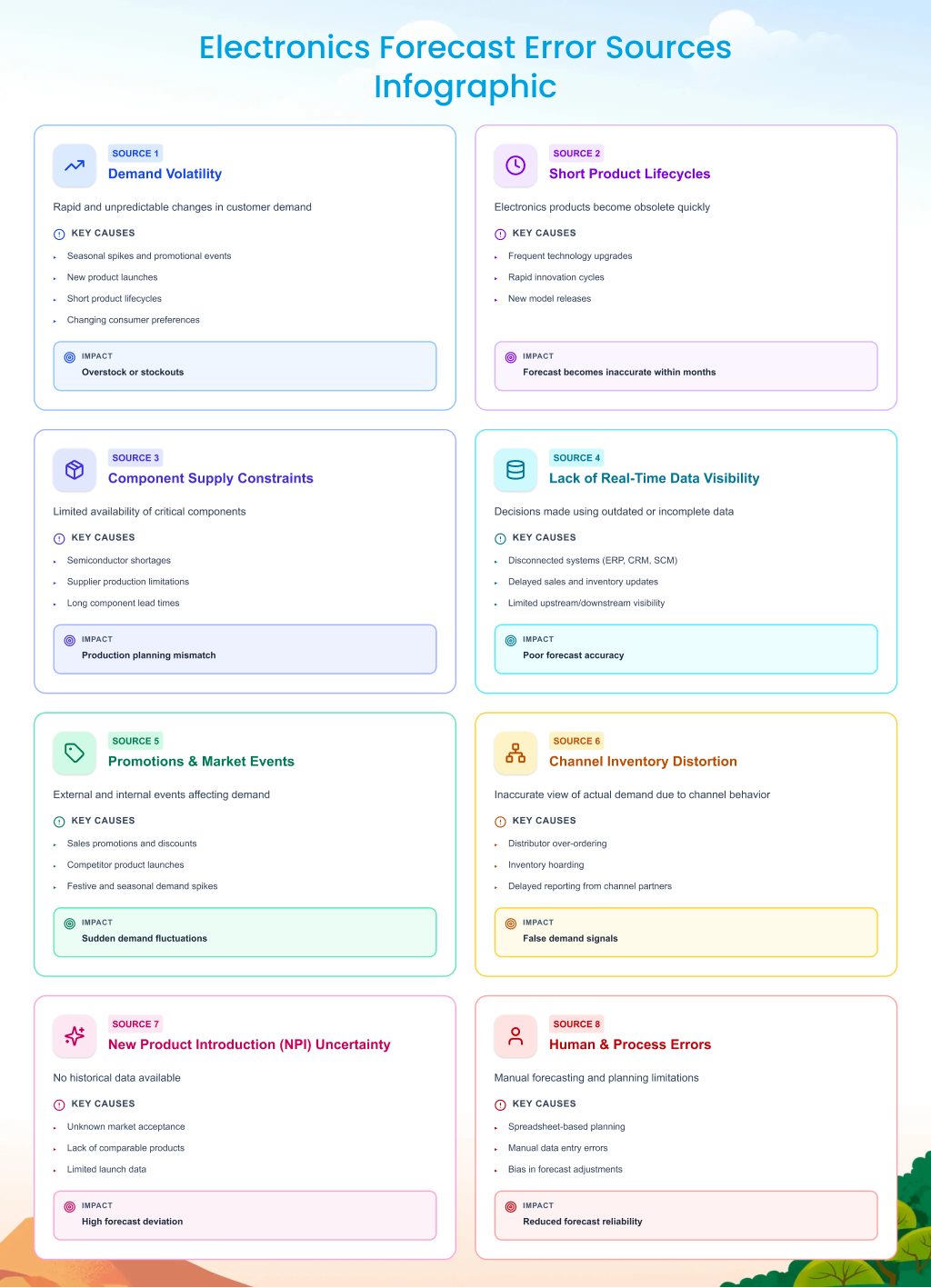 Forecast errors cascade into shortages or stranded components.