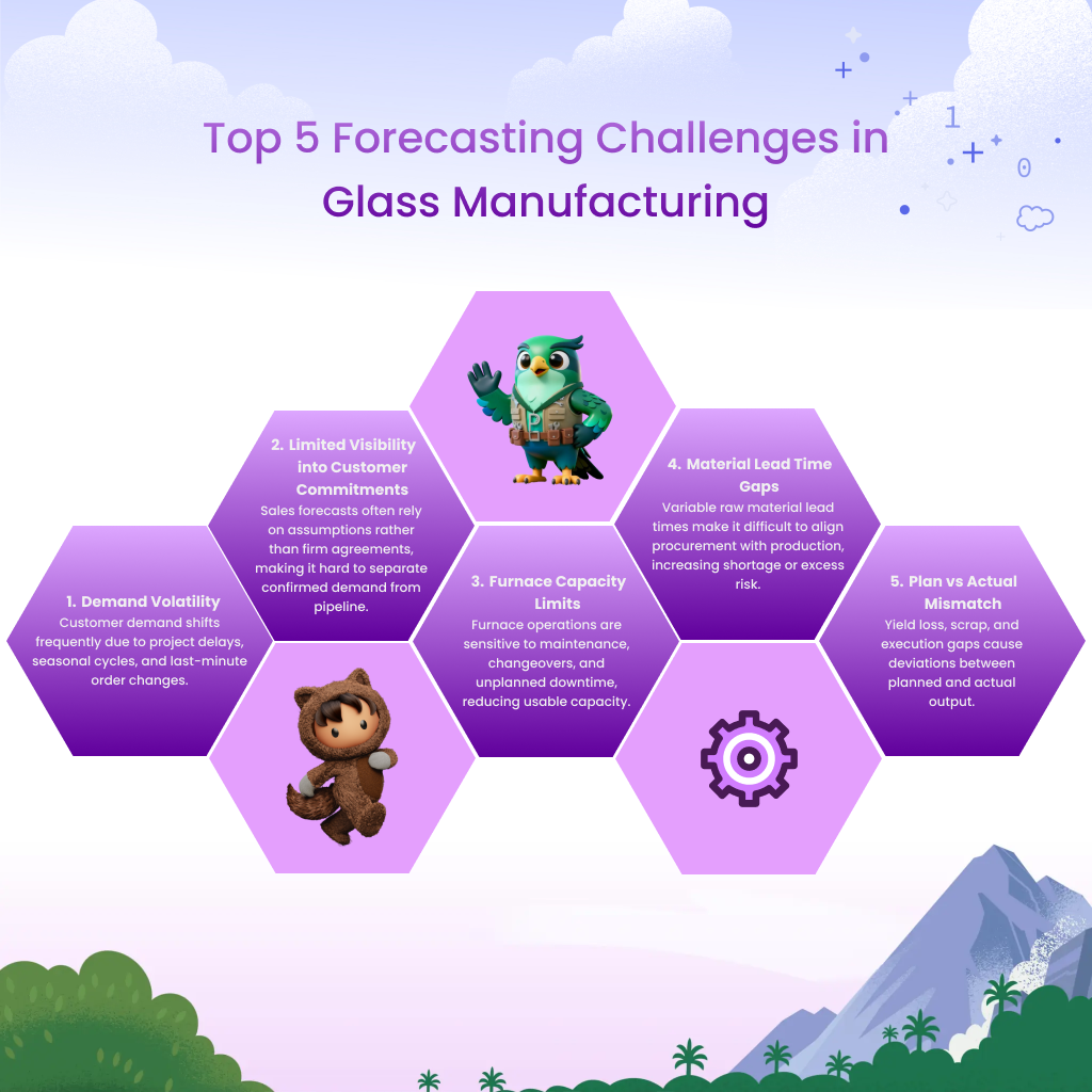 Salesforce Manufacturing Cloud enables glass manufacturers to improve forecast accuracy by unifying sales agreements, distributor demand, production planning, and AI-driven insights into a single system of truth.