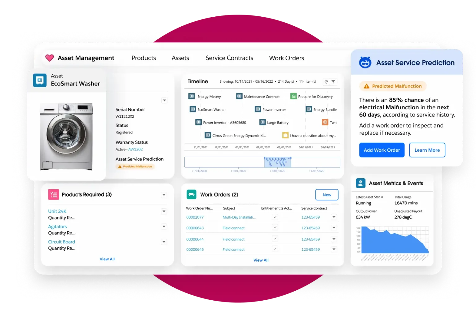Customers demand proactive service, not reactive repairs. Salesforce Asset Service Lifecycle enables: