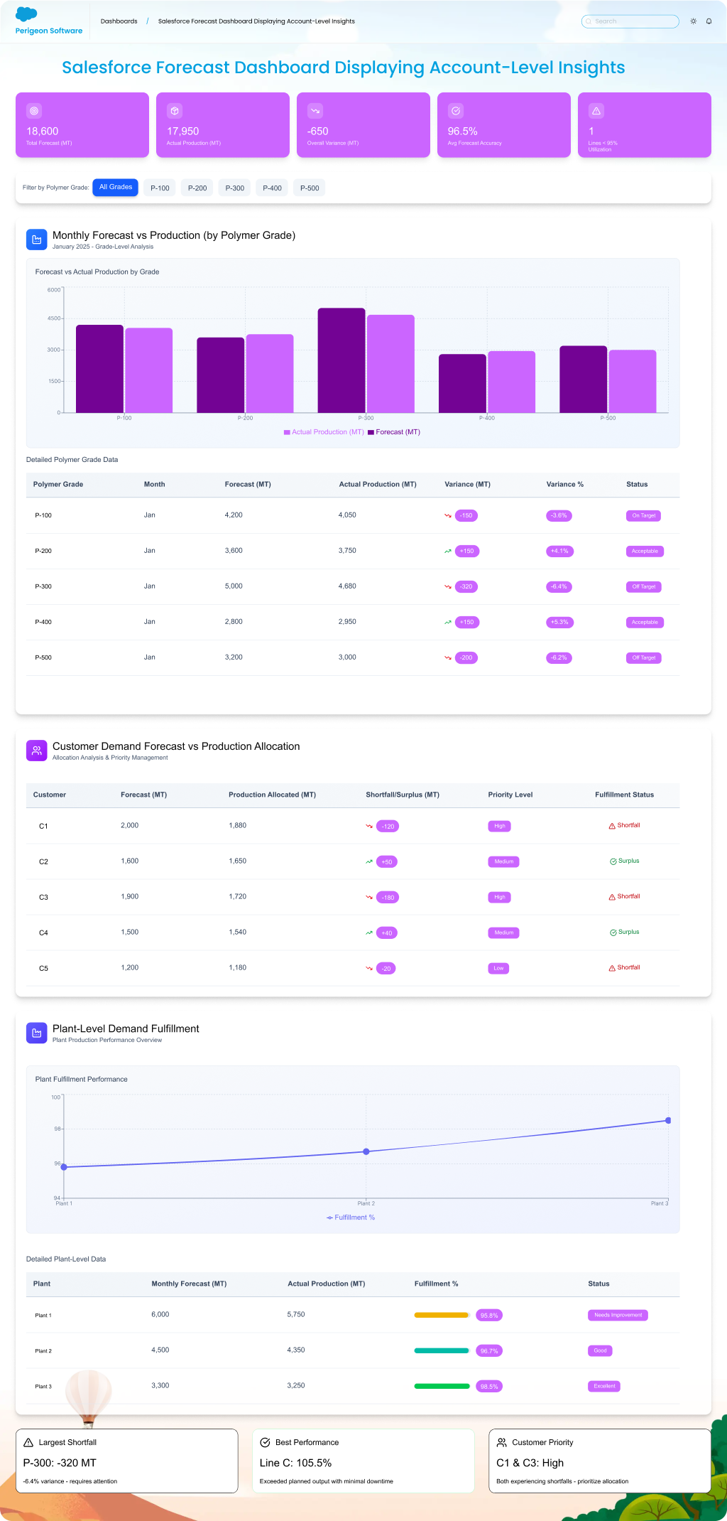 Perigeon Software specializes in implementing Salesforce Manufacturing Cloud for industrial manufacturers — helping clients unlock predictive forecasting and operational visibility.